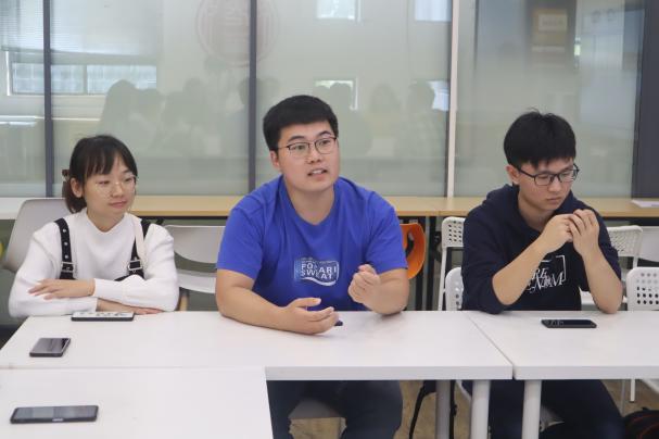 在随后的扶贫故事分享过程中,2017级生物专业的赖宇琴同学分享了家乡脱贫前后的变化。2018级物理专业的何陶涛同学参与到了书院脱贫攻坚暑期社会实践,结合实践中的了解,他提出了自己的困惑:扶贫过程中,在当地人比较排外的情况下,如何与当地人交流配合、取得他们的信任?