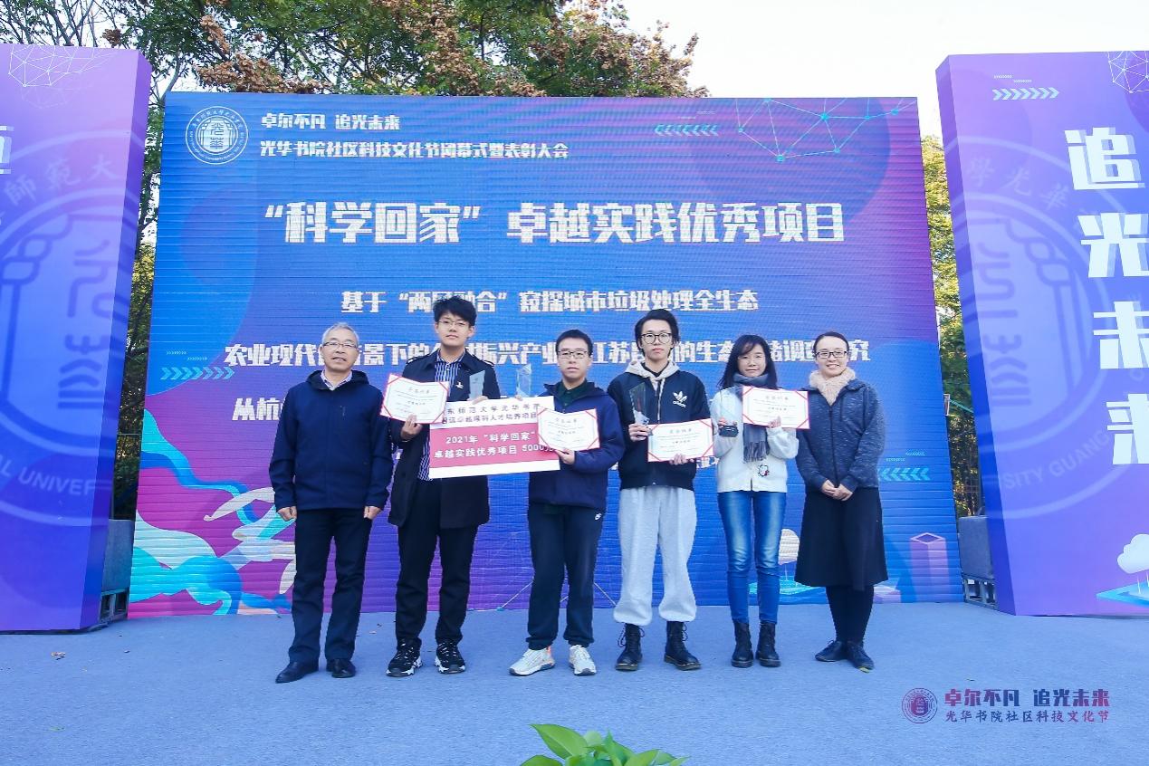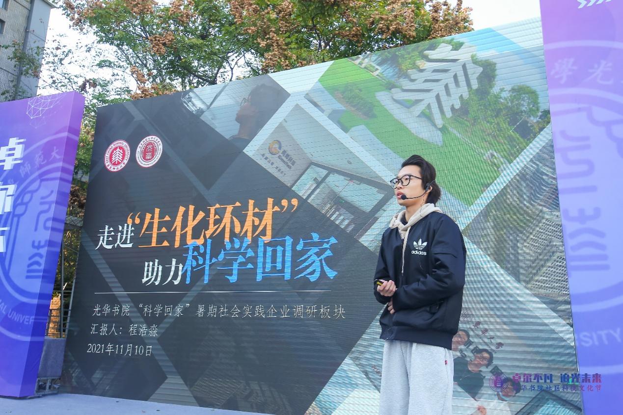 作为光华书院的经典品牌活动,“科学回家”社会实践项目,已经陪伴书院学子度过了三年的寒暑假,实践地覆盖全国,受益人群两千余人次。今年暑假20支队伍立项实践,他们关注身边民生问题、社会热点问题,用自身所学回馈家乡、服务家乡。闭幕式上表彰了四个优秀项目,“基于‘两网融合’窥探城市垃圾处理全生态”和“对话高新技术企业,破解‘生化环材’四大天坑”项目负责人做了现场分享,20级生态环境工程的邱博然表示他们历时118天调研,深入社区、企业、政府,从六大方面总结上海经验,形成76,000字的报告,40份宣传成果,撰写7份建议书,在扎实的实践中感受到大学生的责任和使命;19级材料专业的程浩淼表示通过走进石墨烯、纺织、复合材料三大行业企业,从实验室到生产线,从孵化中心到产业研究院,对话研发人员、营销人员,真正了解了生化环材行业发展的现状、前景以及对技术创新、优秀人才的迫切需求,感受到自己所学专业大有可为,更加坚定了要通过科技创新为社会发展做出贡献。