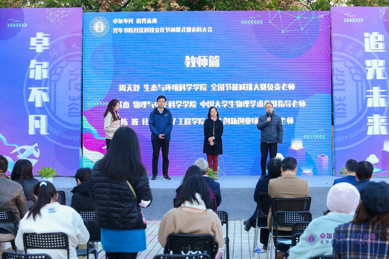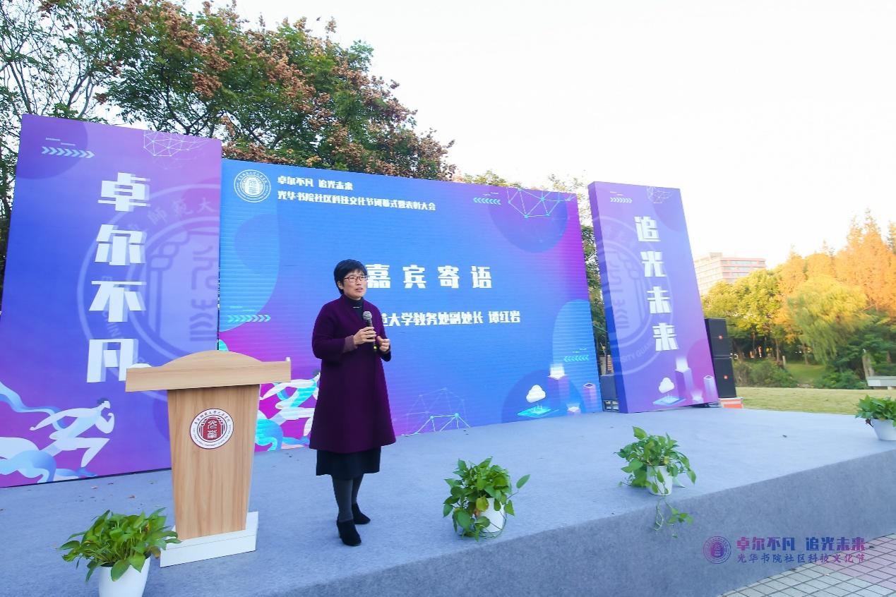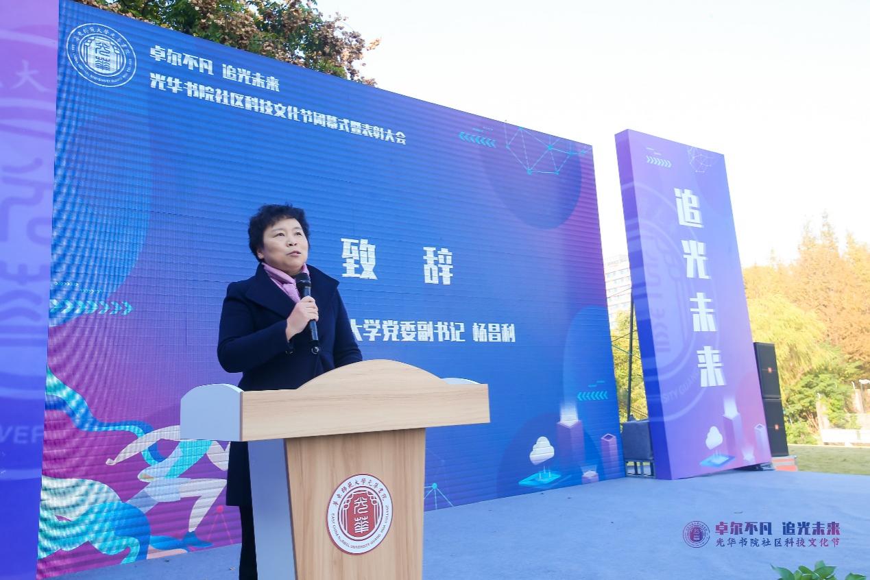 杨昌利书记在致辞时指出,光华书院以“科技创新、科学传播”并驾齐驱为育人特色,不断探索育人新模式,强化第一课堂与第二课堂的联动与融合,对标了学校卓越育人的工作要求。通过社区科技文化节,书院协同学院,在社区环境中搭建起科技文化的盛宴平台,推动了师生交流、科研创新、科学传播等工作的迭代升级,促进了学生创造性思维、跨学科思维、形象思维等训练。杨书记对同学提出殷切期望:“你们都是未来卓越人才的生力军,是中华民族的复兴的奋斗者,希望大家多关注国家和社会发展中的需求,崇尚科学人文精神,不断拓宽自身的视野,学习在创新创业中训练思维和能力,实现卓越发展。成才后立志到祖国的最需要的地方去发光发热,把个人理想融入到国家富强,民族复兴之中。”