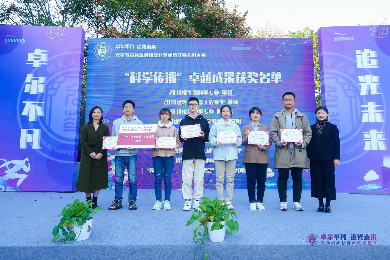 光华书院学子一直以弘扬科学精神、传播科学知识、提高民众科学素养为己任,从身边常见的现象和社会关注点出发,依托自身专业,在社区、中小学等开展科普宣传和科普服务活动,覆盖近千余人次,发表了几十篇科普文章,《十万个冷知识》科普图书也即将出版。“科学传播卓越成果”奖正是激励更多同学投身科学传播工作中而设立,本次表彰的8位个人(集体)都是其中的佼佼者。