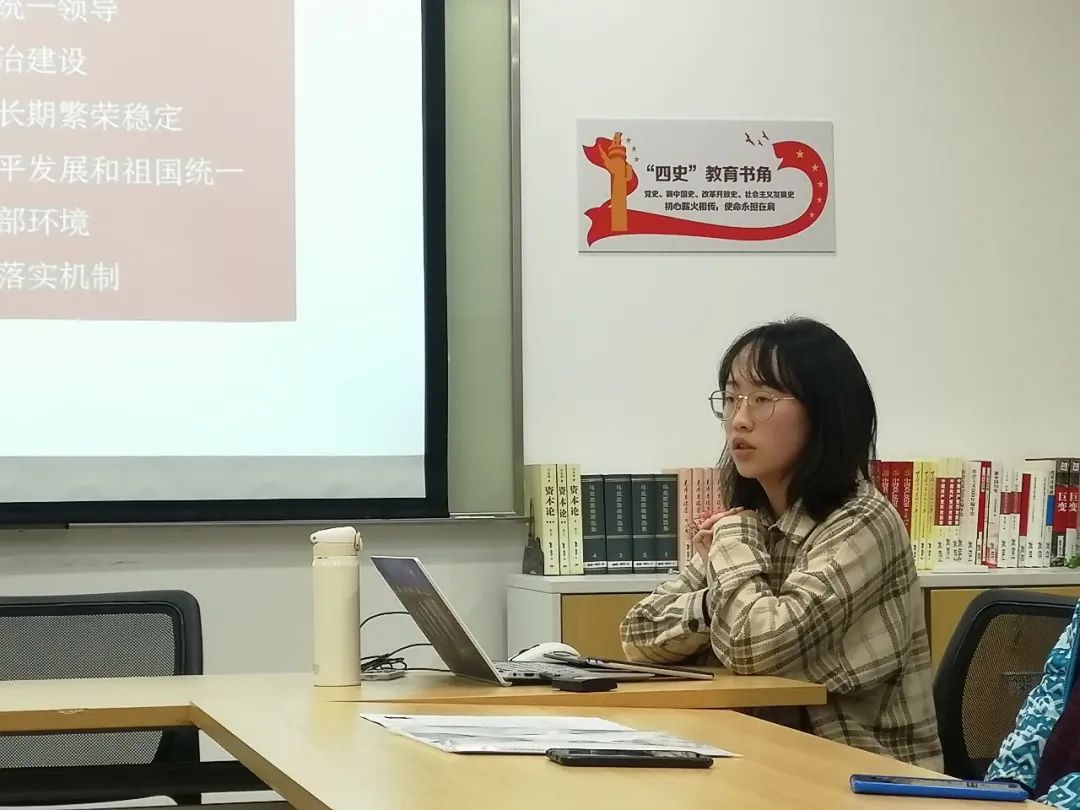 支部书记张子怡对活动进行了总结,充分肯定了同志们的学习讨论情况。张子怡分享了我国编制五年计划的意义和重要性,从四个方面分享解释了为什么我国现阶段转向了高质量发展阶段,但仍然存在不平衡不充分这一问题。指出编制五年计划是向苏联学习经验,避免未来计划的盲目性。希望同志们继续关注时事,加强理论学习,提高自身政治素养。