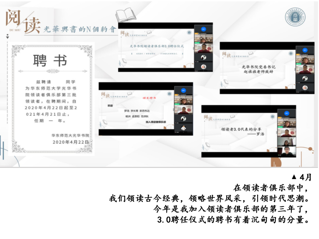问渠哪得清如许?为有源头活水来。知识需要不断更新,就像水的源头。只有不断读书、学习和探索,才能保持思想的活力。作为一名理科生,我们不仅探索宇宙奥秘,也向往诗与远方。2020年,我和你们一样,在熹微晨光中捧起一本书,在读书会上碰撞出思维的火花,化身朗诵者,经典咏流传。
