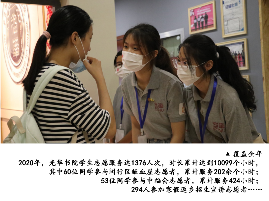 我曾聆听劳模的讲座,感受工匠精神;曾深入同学们的宿舍,为居家学习的同学们寄出所需的学习用品;也曾是进博会上一抹鲜艳的小叶子,向各国来宾展示自信的风采。在用双手塑造美好,以行动传播爱心,将志愿服务融入日常生活的过程中,助人为乐的喜悦始终是我最大的收获。1376人次,10099个小时。“国之重任青年赓续”,原来我们真的正在一步步走向这几个字。