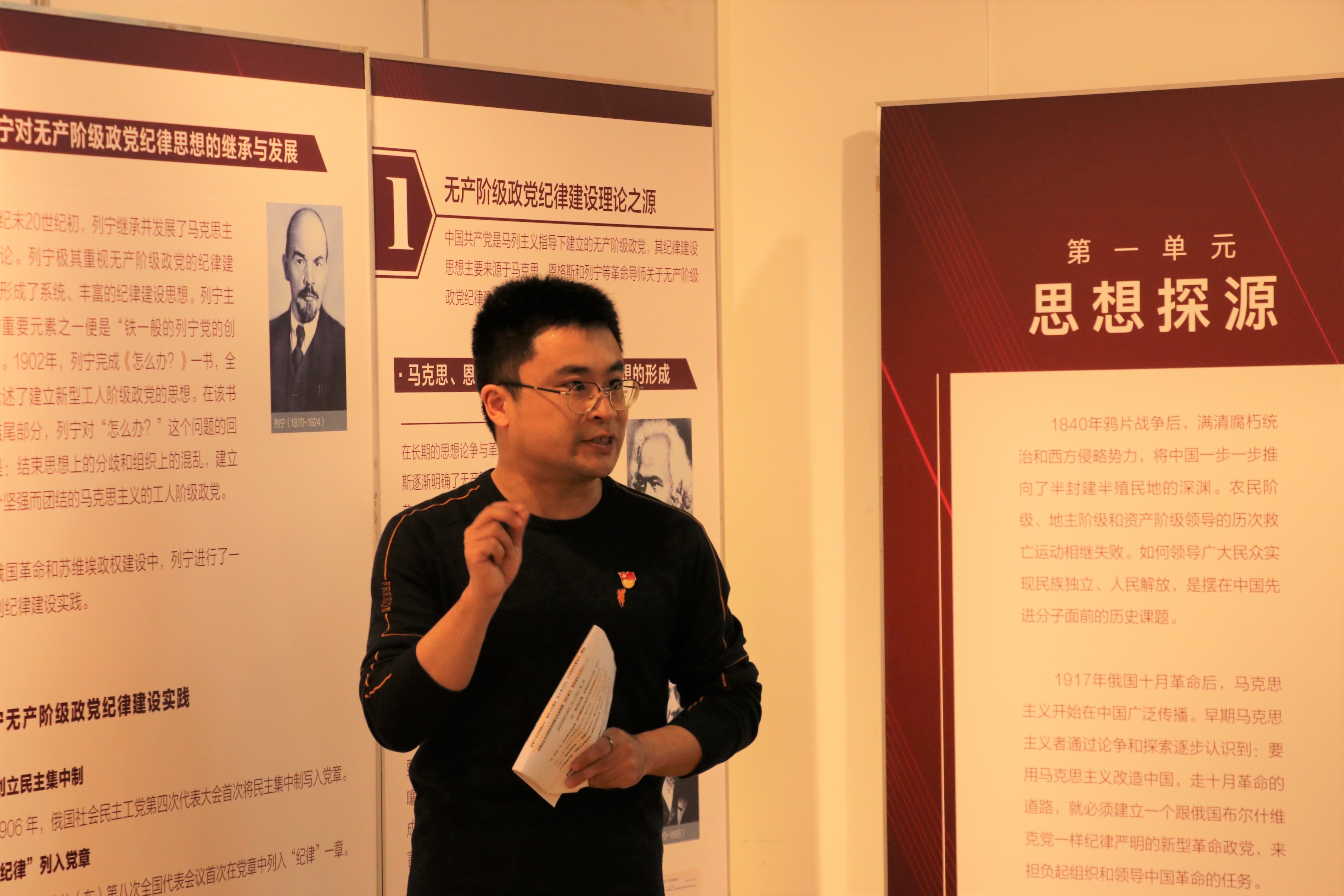2021年4月6日中午,光华书院党委开展中心组扩大学习及教职工理论学习、纪检干部专题学习,前往闵行校区图书馆参观《抓铁有痕铸党魂——中国共产党早期纪律建设图片史料展》,光华书院党委副书记、兼职纪检员涂皘做主要讲解,书院全体教工党员、各支部纪检委员共同参观、学习。