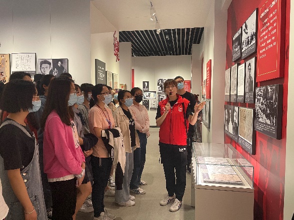 在“红色印记”展馆中,讲解员给我们详细地介绍了两位社会主义青年团的创始人——俞秀松与施存统的生平与社会主义青年团的成立背景。重温的这段历史对于现在的我们来说依旧有着非常重要的教育意义,尤其是现在的我们作为当代大学生正是与他们当年相仿的年纪,不免会有更深的感触,从内心深处更加敬佩这些青年先驱们,也会自问是否有足够的资格从他们手中接过时代的接力棒成为新时代的青年榜样,更会因此以优秀的先辈们为标准要求自己,不断进步。