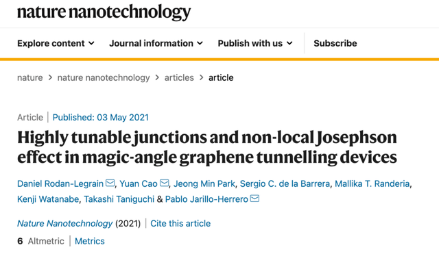 曹原及其实验室同事的这次研究,主要是对隧道器件设计和约瑟夫森效应的一次验证与探索。电流需要电压才能产生,是我们从中学物理学到的欧姆定律相关知识。但在一切皆有可能的“超导领域”里,有一种“约瑟夫森结”的构造可以无视欧姆定律,无需电压便可产生“超电流”。