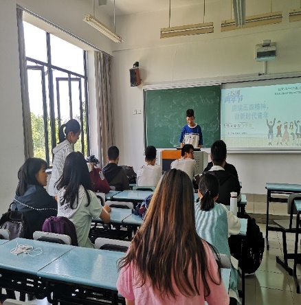 系列活动第三部分为室内集会。5月20日,团员们在闵行校区奥盛教学楼209教室进行了本次团日活动的室内部分。活动开始,团支书带领团员们重温入团宣誓,让同学们坚定理想信念,不忘初心,牢记青春誓言;活动第二阶段为五四运动知识问答,通过问答的形式,与大家共同回忆那段艰辛岁月;活动第三阶段团员们一同观看