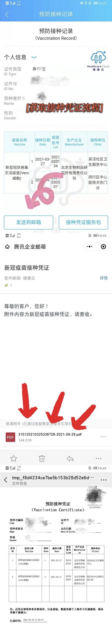 在健康云中查询到接种信息——发送到邮箱——在邮箱中接收PDF文件——该文件即为凭证